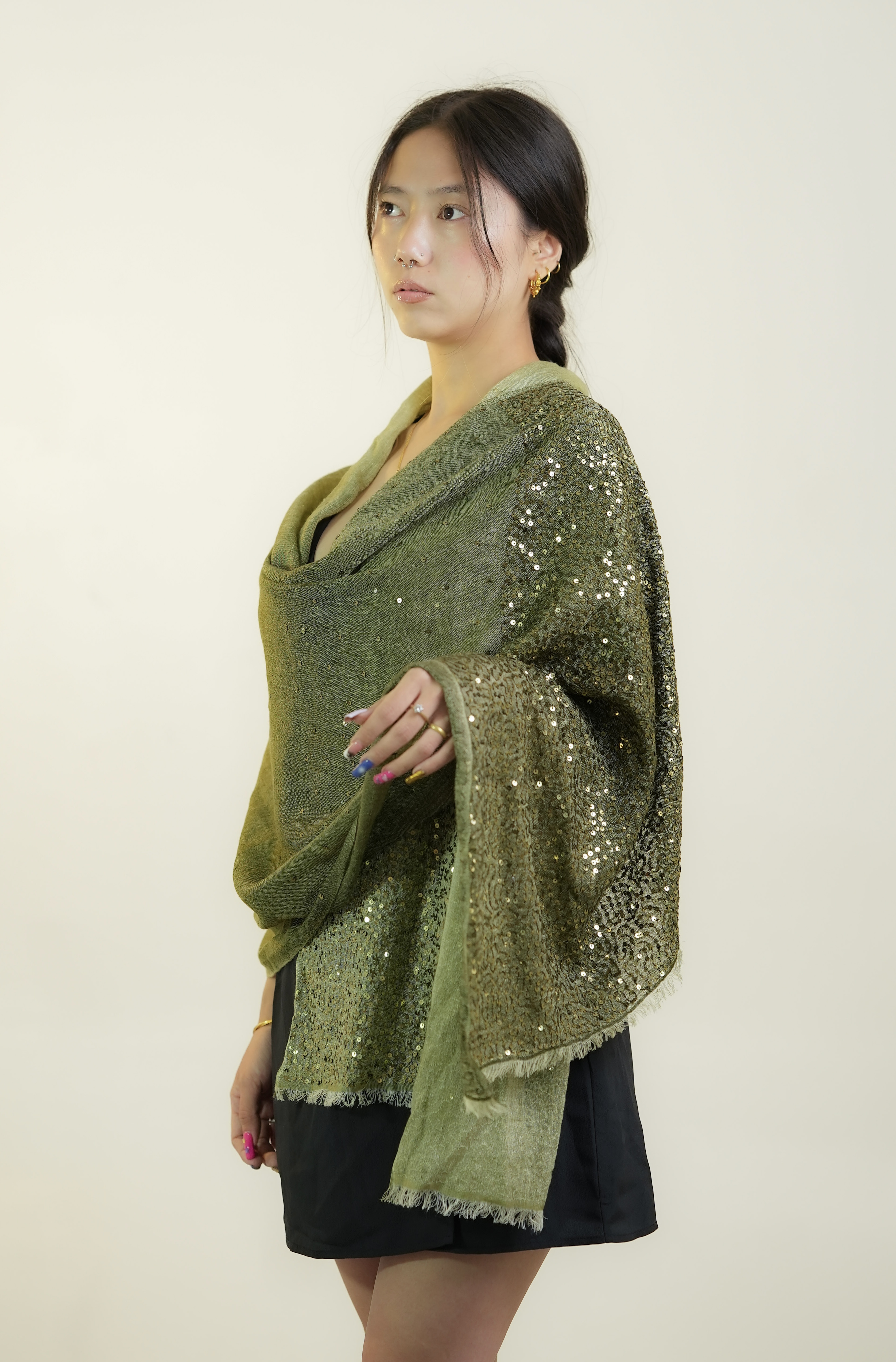Our handmade sequin pashminas are delicately crafted by skilled artisans, blending traditional techniques with a touch of sparkle.